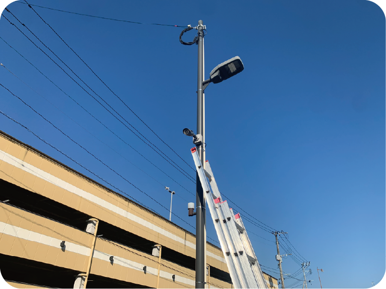 既設の防犯カメラが経年劣化により映像が乱れる状態となり、長崎県警様より交換のご相談をいただきました。現地確認を行い、カメラ本体と配線の状態を調査したうえで交換対応を実施しています。