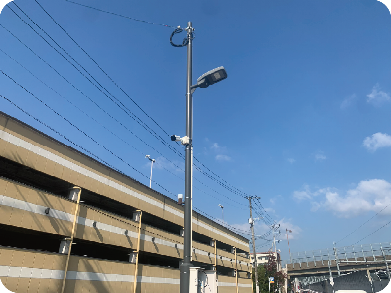 諫早市の諫早駅西口駐輪場にて、故障していた防犯カメラの交換工事を行いました。自転車の盗難抑止や、駅前の交通量が多い道路に面した横断歩道での事故検証にも役立つ重要なカメラです。